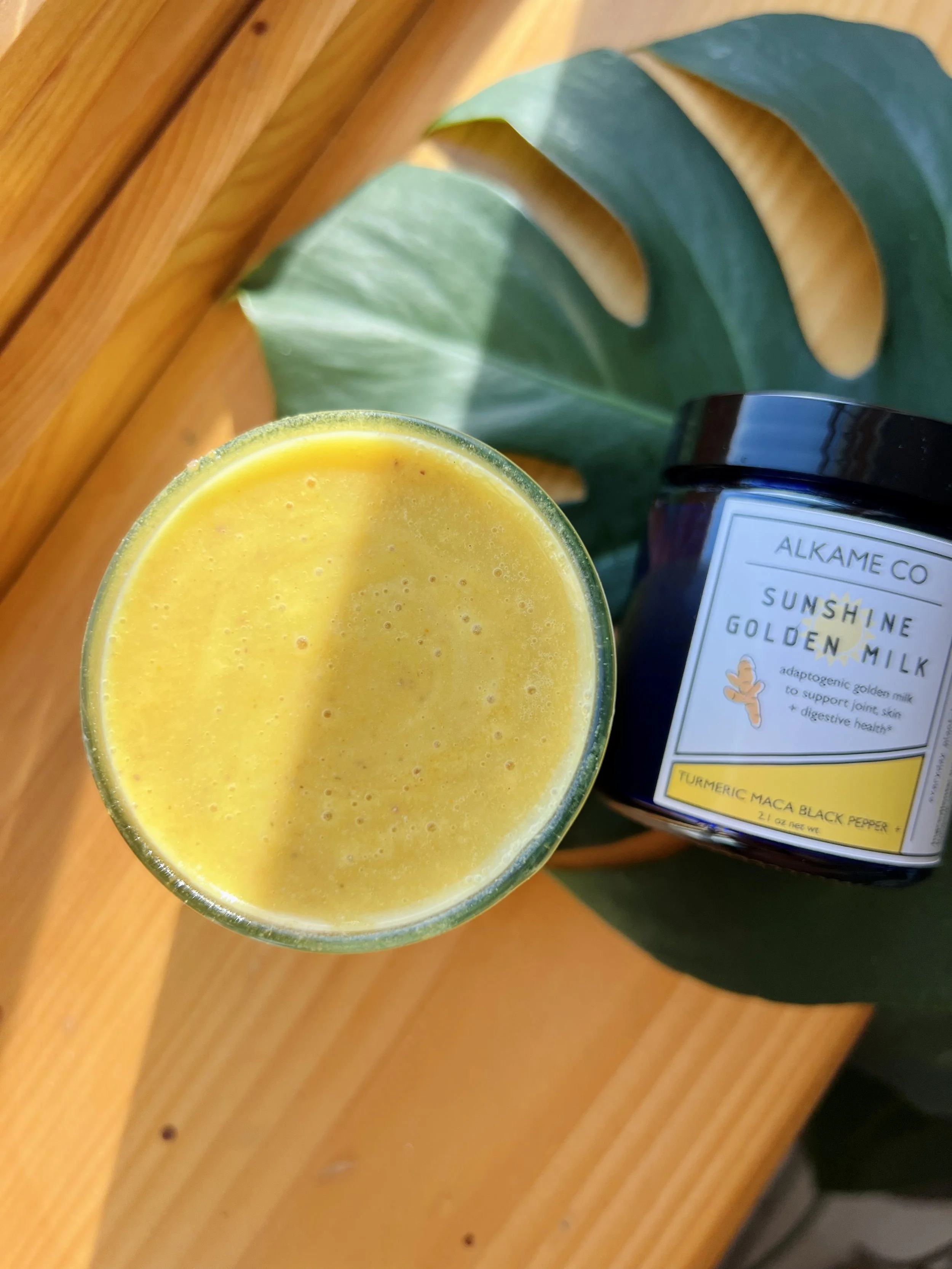 Simple, bright and delicious—this Creamy Peach Whip is the perfect recipe for peach season. We were dreaming of a nutritious, creamy peach drink to make with our Sunshine Golden Milk, and when we landed on this we realized it resembles a mango lassi. Just swap the fruit, use less sweetener and add some of our Sunshine Golden Milk powder! It makes the perfect afternoon snack—or maybe even an easy, healthy breakfast.